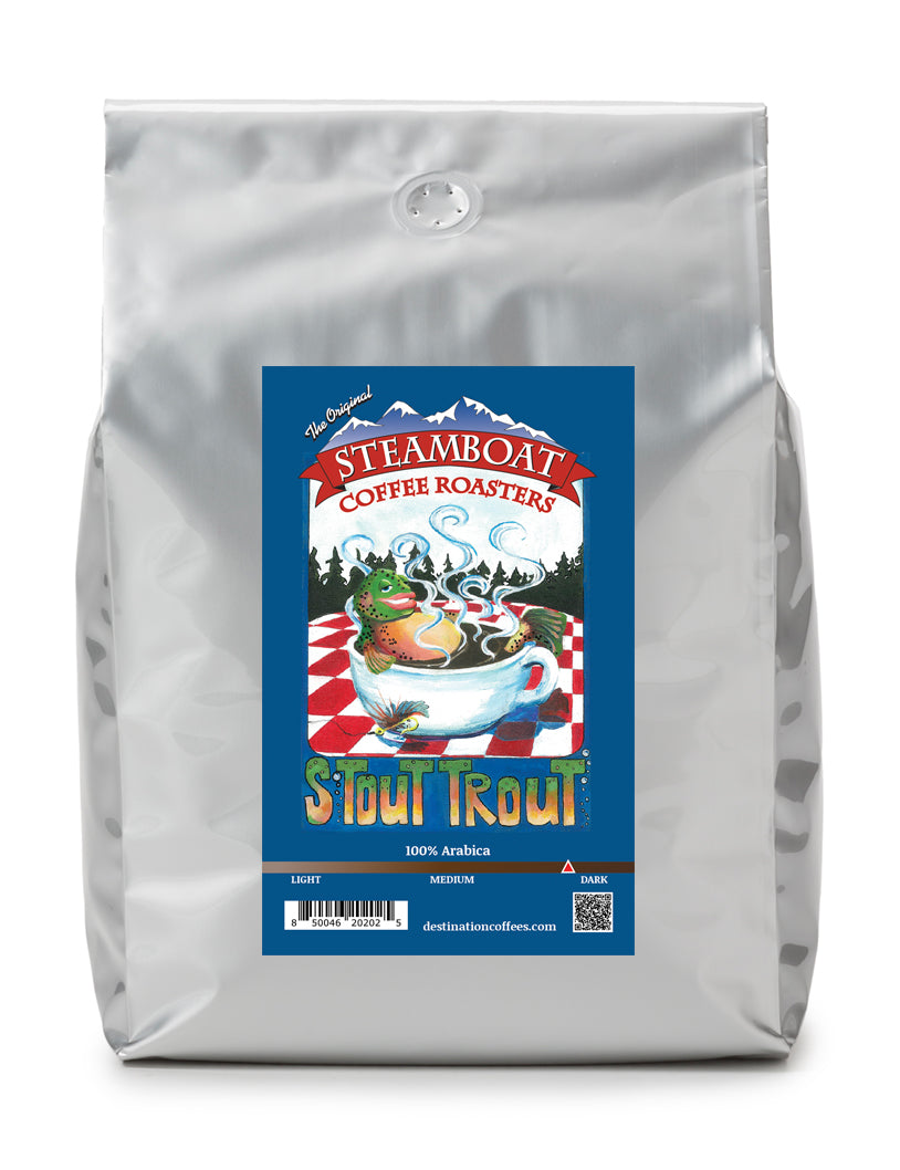 The elusive Stout Trout - he prowls the shallows, ready to pounce on any creature smaller than he. Keep your caffeine levels high and you just may catch "The Big Fish" - or at least you'll have a tale to tell. Always grateful, never bitter - just like our coffee!
